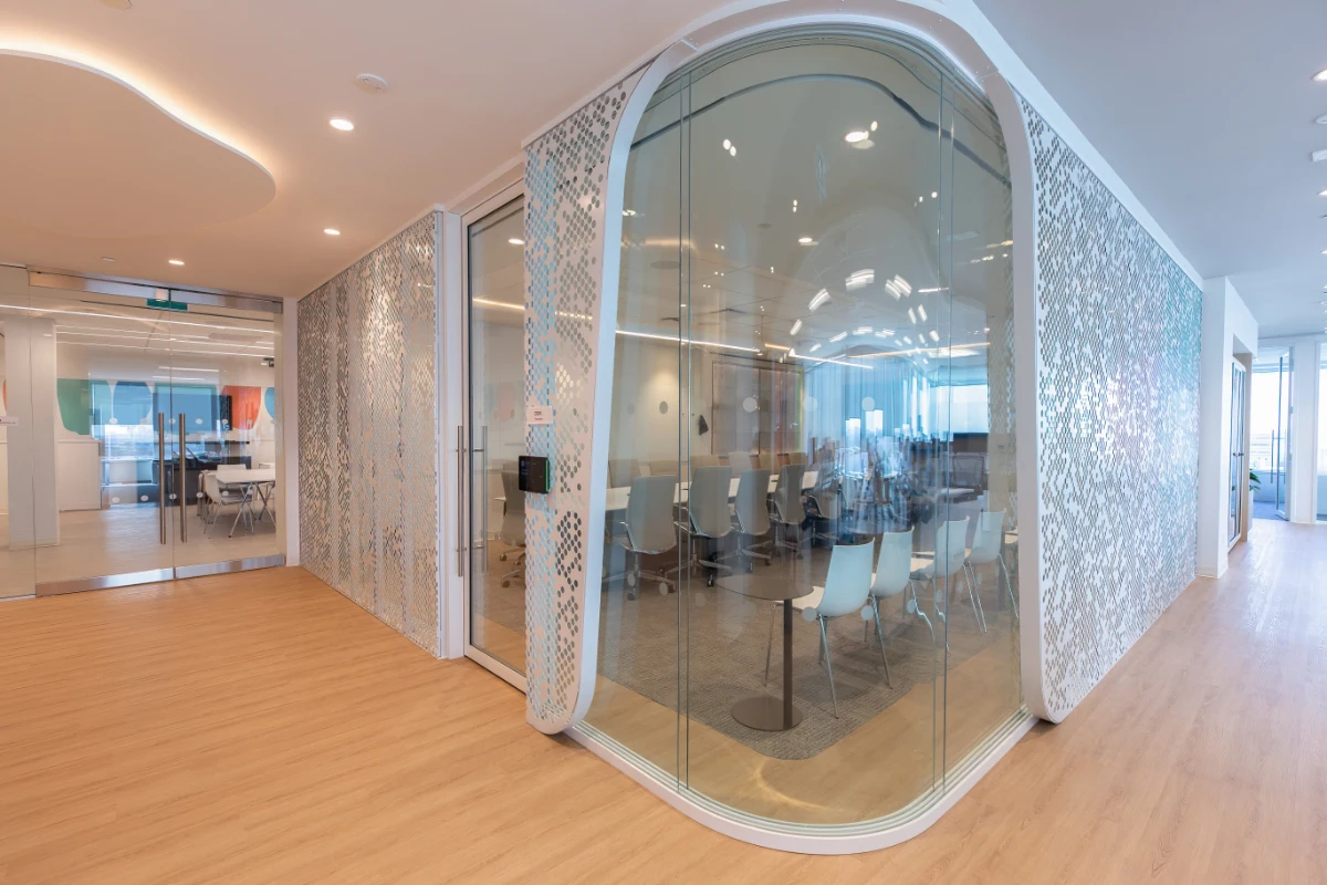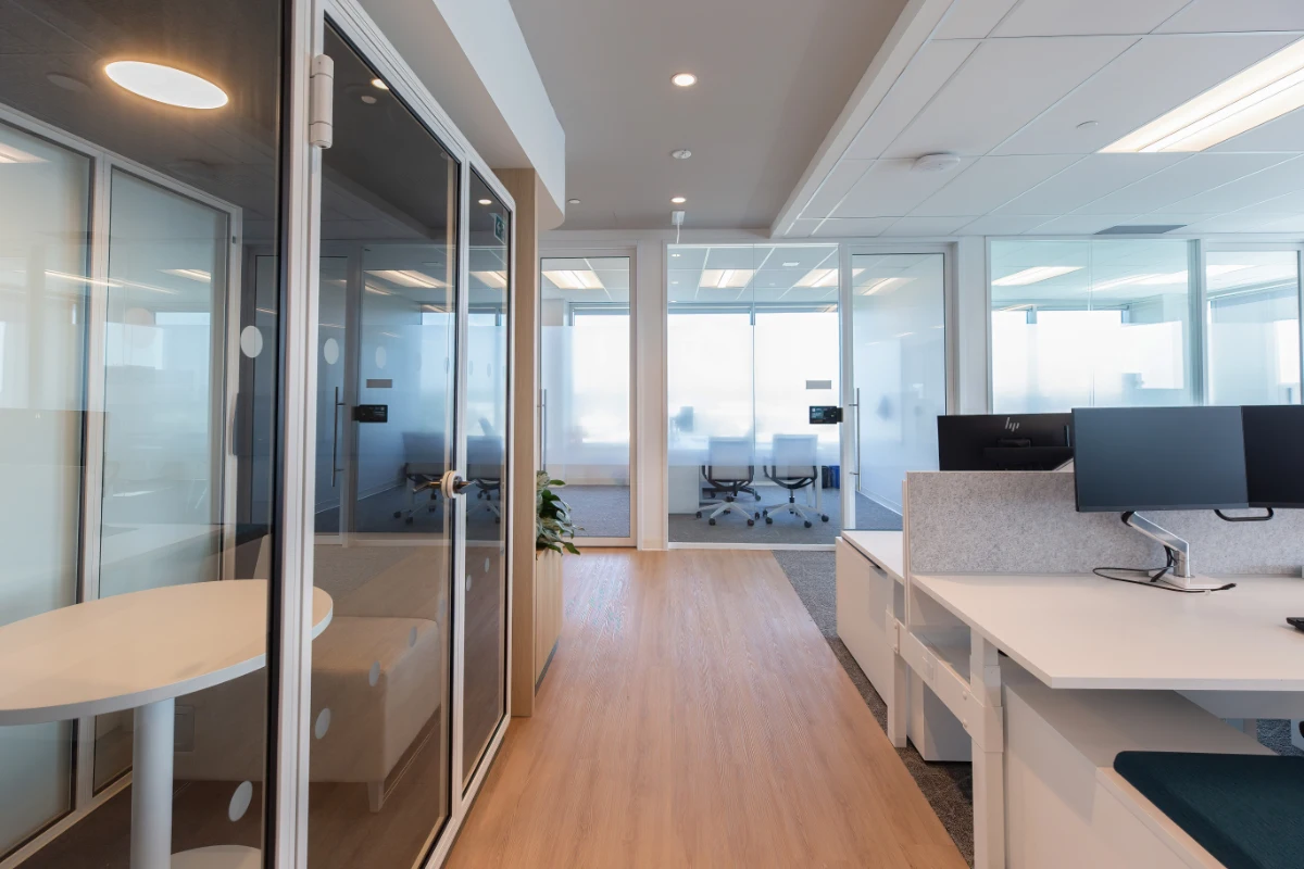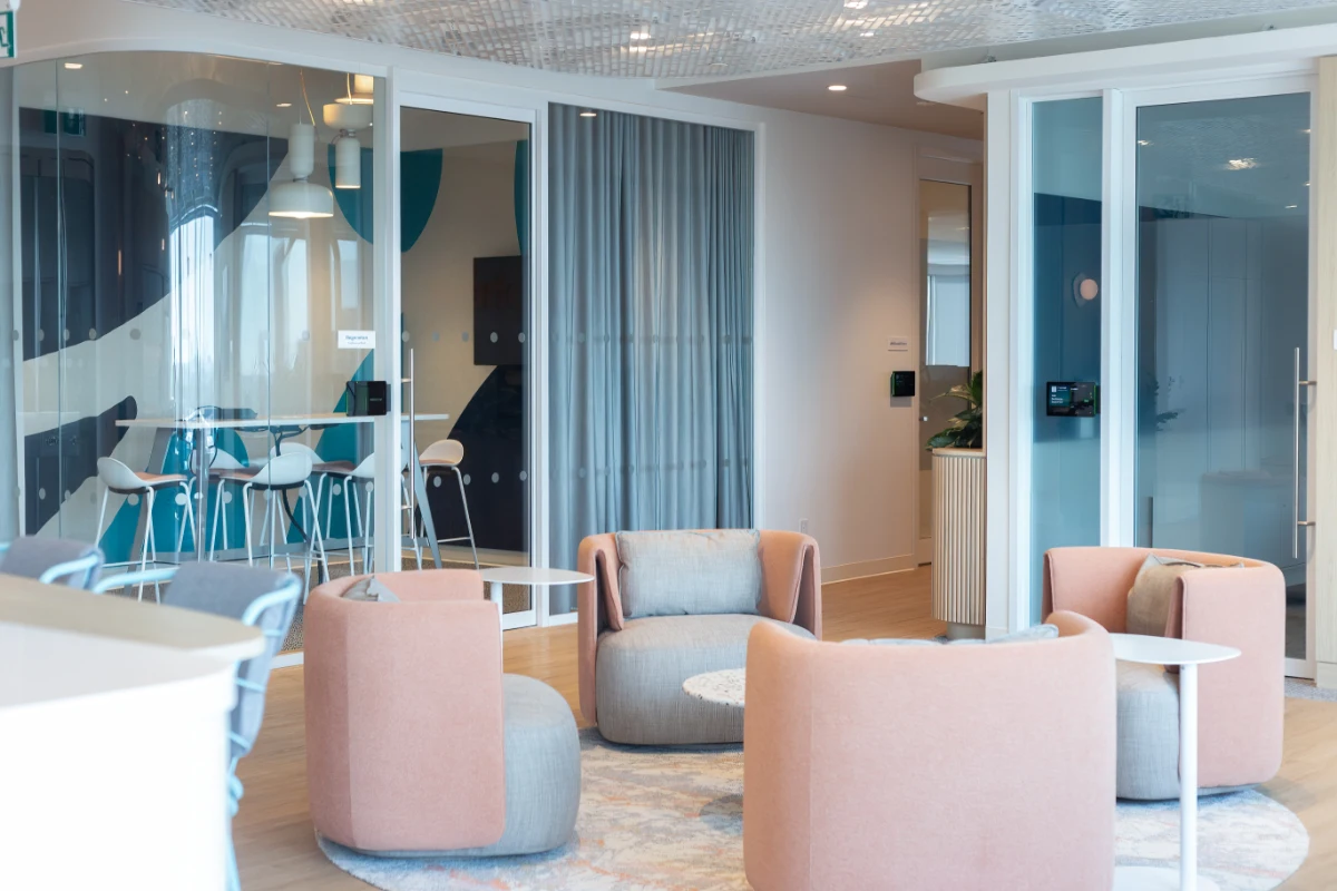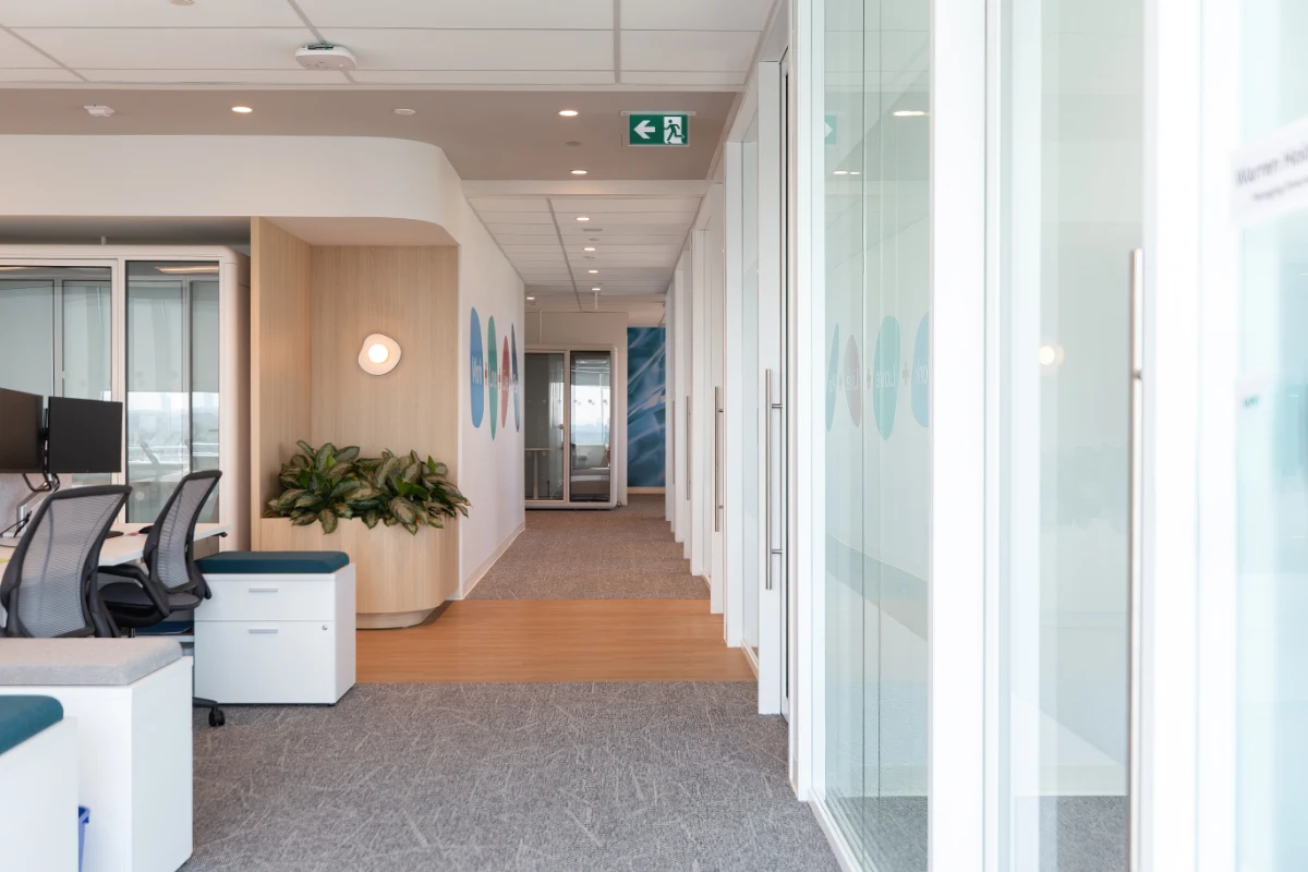 A harmonious interplay of textures and flowing curves adds dimensional richness, while the crisp studio-white finish paired with natural wood accents creates a fresh, inviting atmosphere. This thoughtfully designed environment by Streamline Resource Group, reflects the mission of a global innovator in healthcare technology, supporting professionals who restore health and mobility, and empowering patients to live and perform at their highest potential.